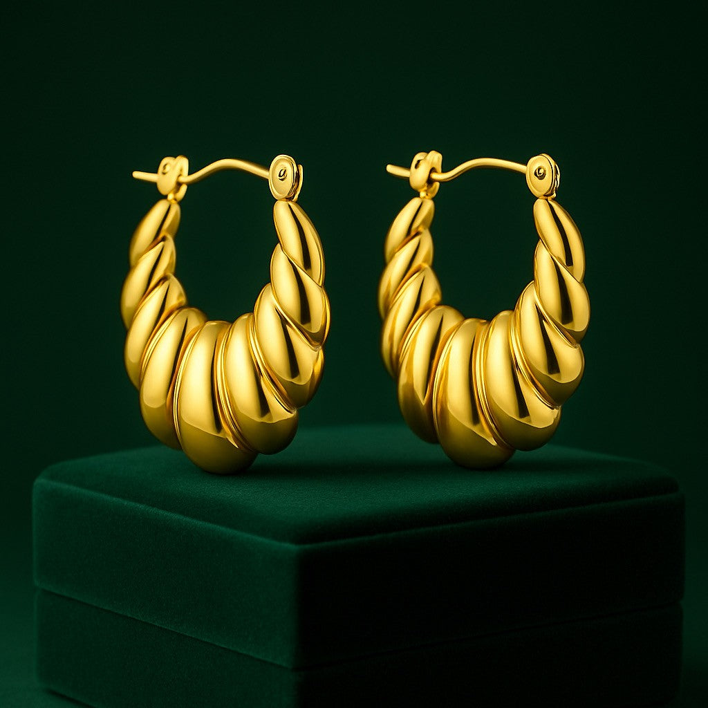 Our earrings are made with top-quality materials: gold-plated titanium steel and cubic zirconia stones. They’re waterproof, hypoallergenic, and perfect for sensitive ears. Lunarié Jewelry uses a safe gold-plating technique with titanium—not nickel—and the long-lasting PVD method. With a gold layer between 0.03–0.05 microns thick, our earrings are made to shine every day without fading or irritation.